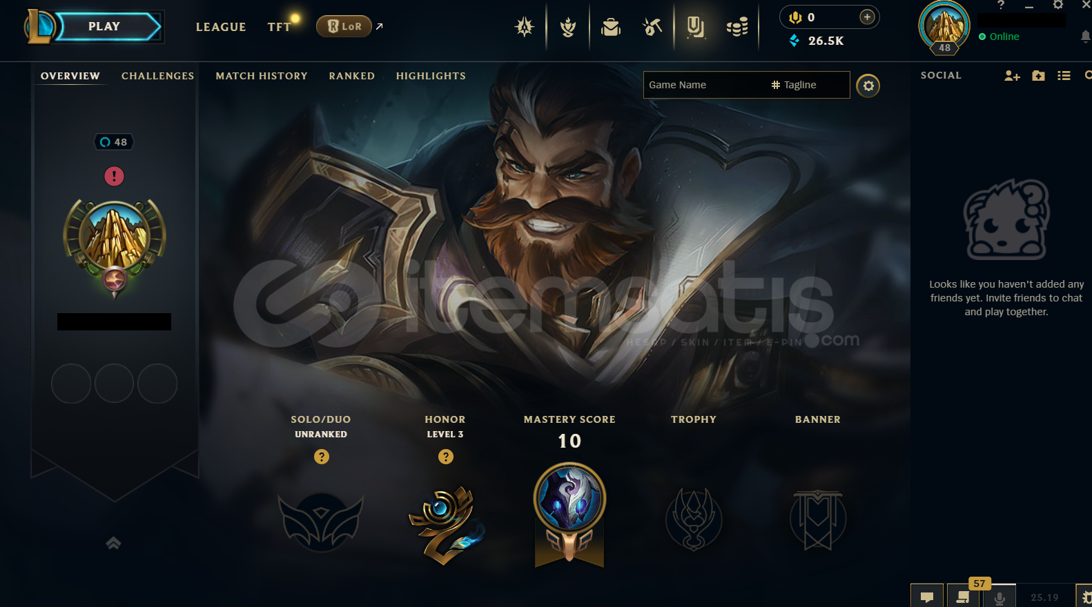 • Hesap EUW Unranked LoL Hesabıdır.