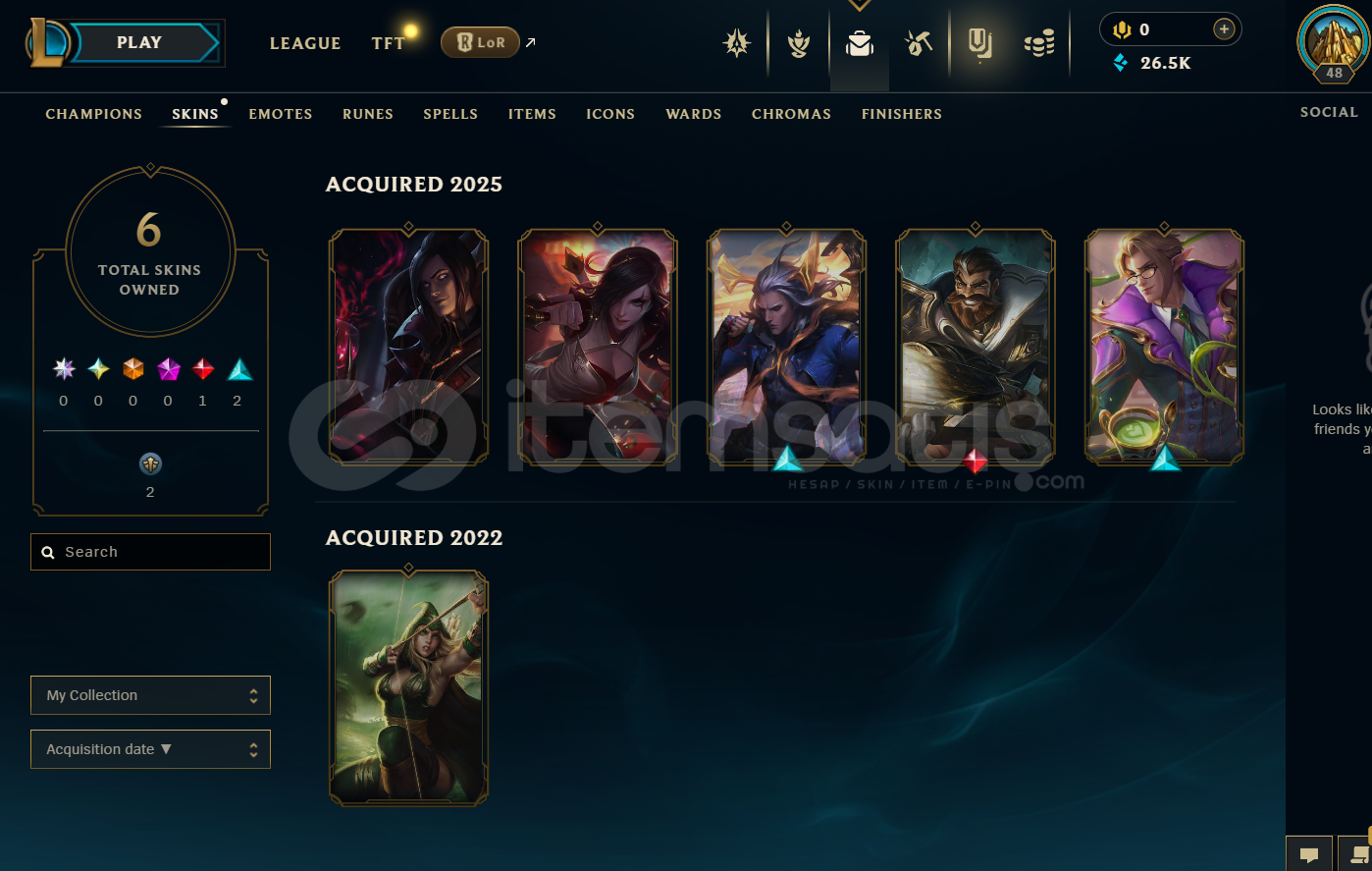 EUW Unranked | 6 Kostüm - 34 Hero | LoL Hesap