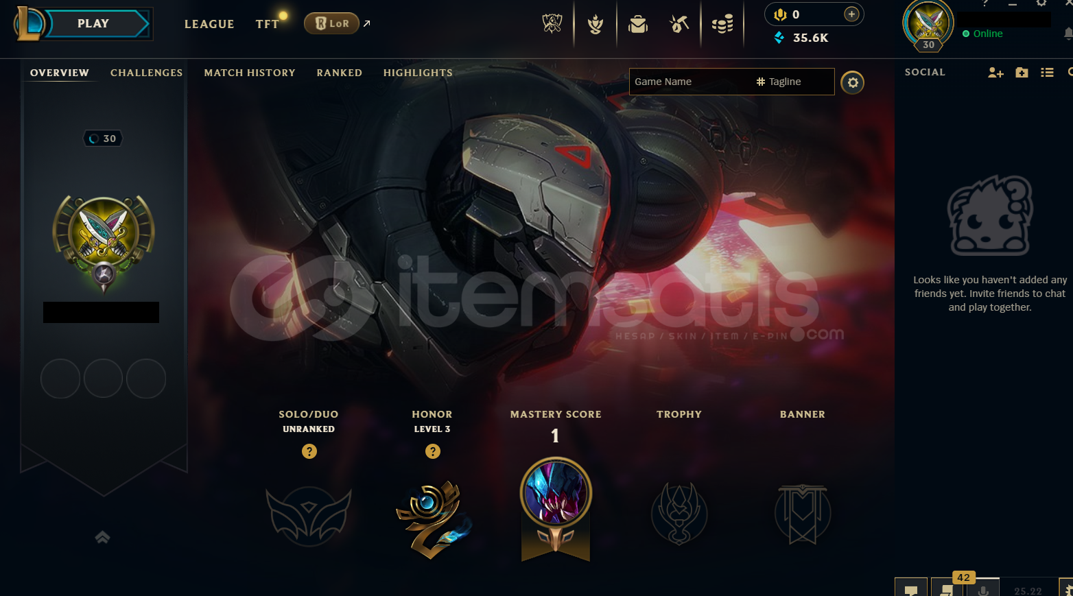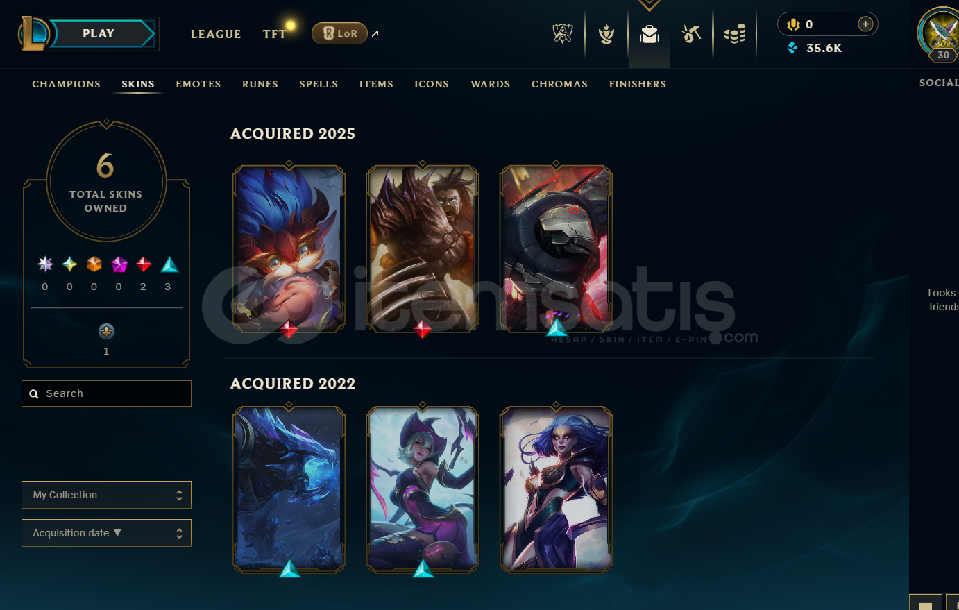 EUW Unranked | 6 Kostüm - 35K Mö| LoL Hesap