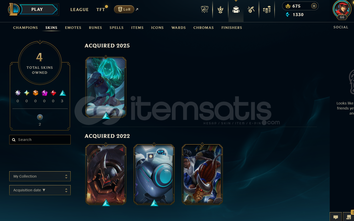 EUW Unranked | 675 Rp - 4 Kostüm | LoL Hesap