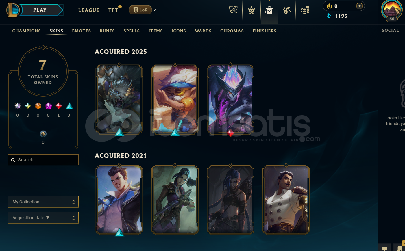 EUW Unranked | 7 Kostüm - 33 Hero | LoL Hesap
