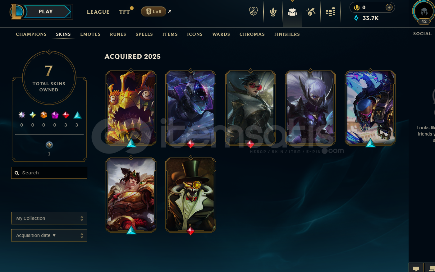 EUW Unranked | 7 Kostüm - 33K Mö | LoL Hesap