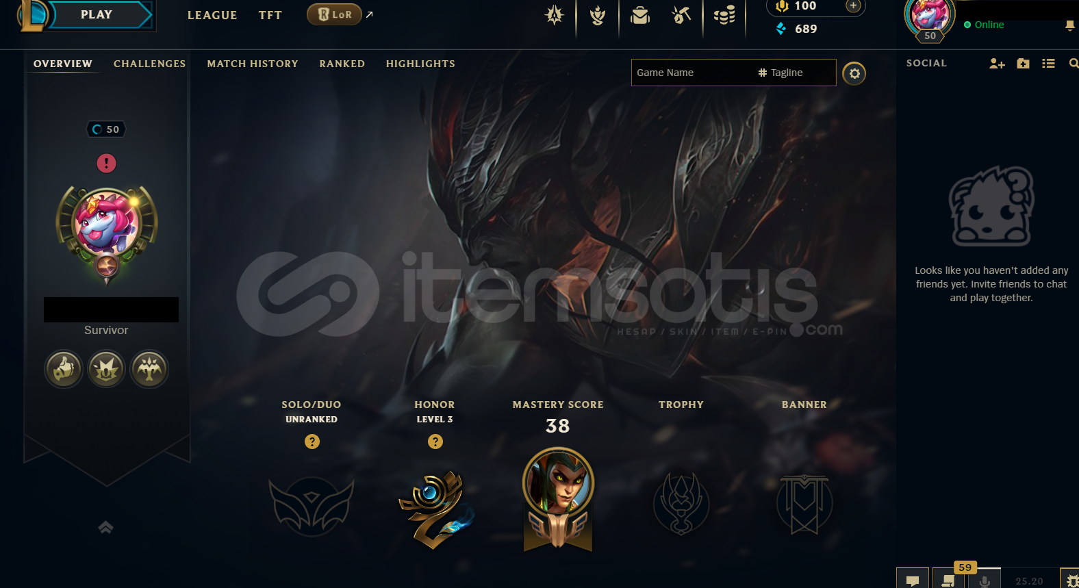 EUW Unranked | 7 Kostüm - 36 Hero | LoL Hesap