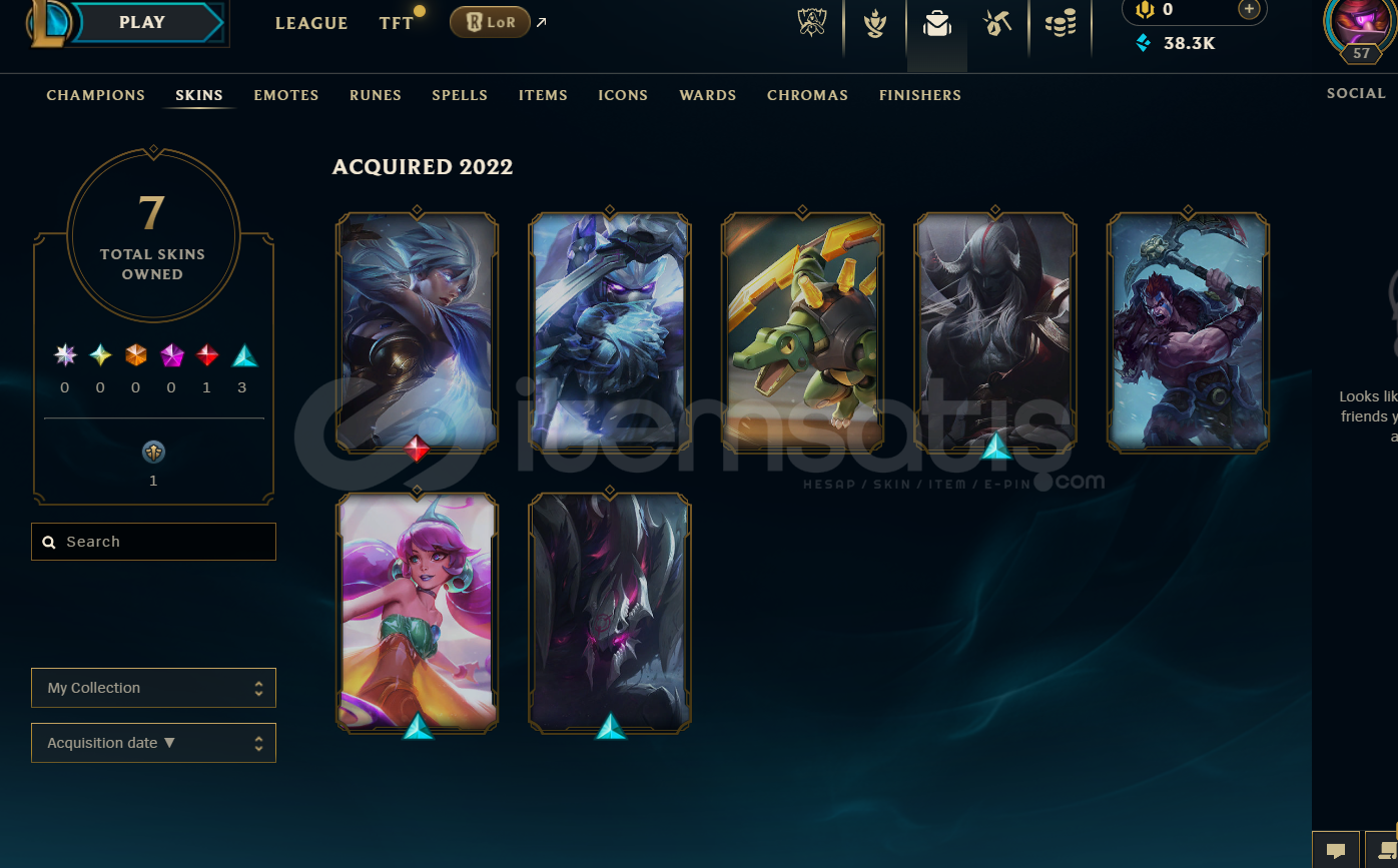 EUW Unranked | 7 Kostüm - 38K Mö | LoL Hesap