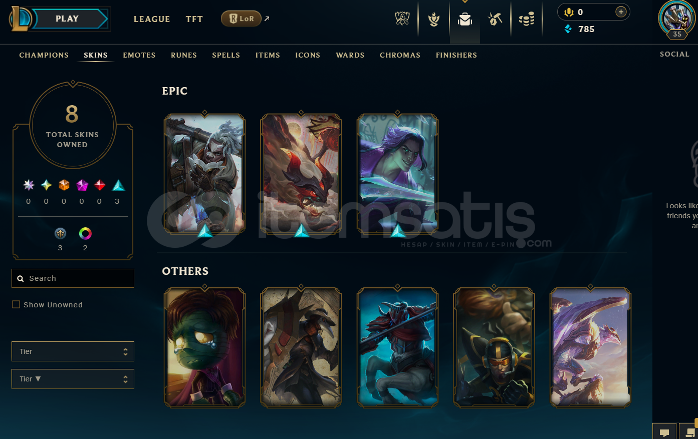 EUW Unranked | 8 Kostüm - 35 Hero | LoL Hesap