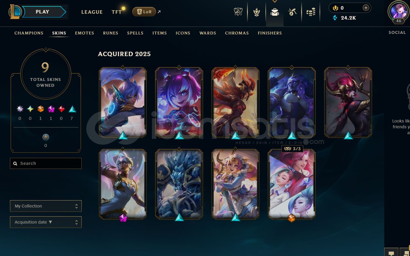 EUW Unranked | 9 Kostüm - 24K Mö | LoL Hesap