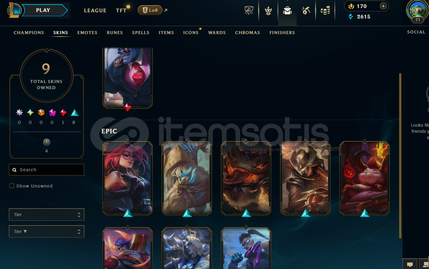 EUW Unranked | 9 Kostüm - 42 Hero | LoL Hesap