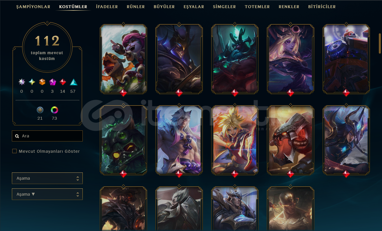 Hesap full herodur.Hesap 6 ay önce falan trden EUW geçmedir .444 seviyedir.geçen sezon dia3 + master simgesi bulunmakta .dia2den bir kaç hafta önce düştü aktif olarak emerald1 75 lpdir.takdir seviyesi 4tür banı vs. bulunmamakta. 62k mavi öz 35 rp. flex rankı kapalı.toplane main hesap toplane heroları full skinli dari garen 600k fln.100 cevher bulunmakta .112 skin73 renk paketi247 profil ikonu - 37 totem - 194 ifade bulun...