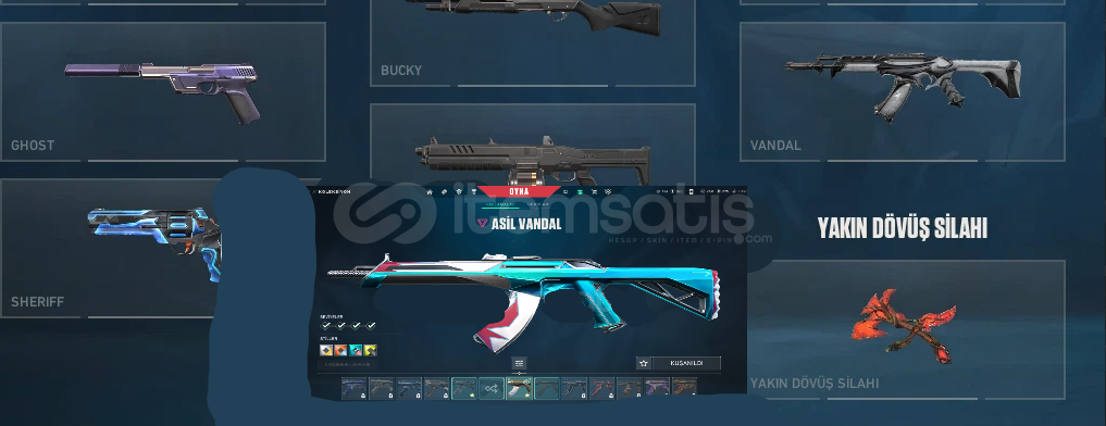 Hesabın valorant kısmında ise ASİL VANDAL - YAĞMACI VANDAL ve GAIANIN AZABI BIÇAK bulunmakta.