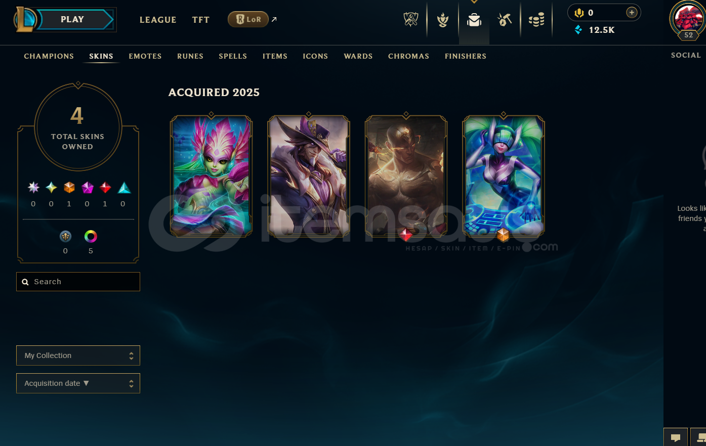 EUW Zümrüt 3 | 4 Kostüm - 12K Mö | LoL Hesap