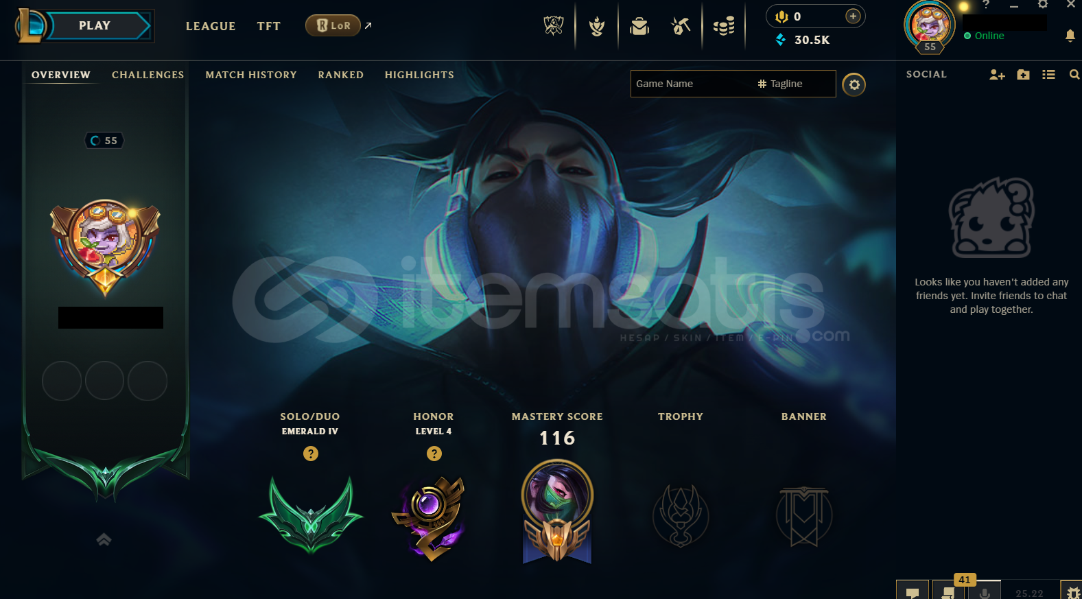 Hesap EUW Tek/Çift Zümrüt 4 - 92 Lp EUW LoL Hesabıdır.