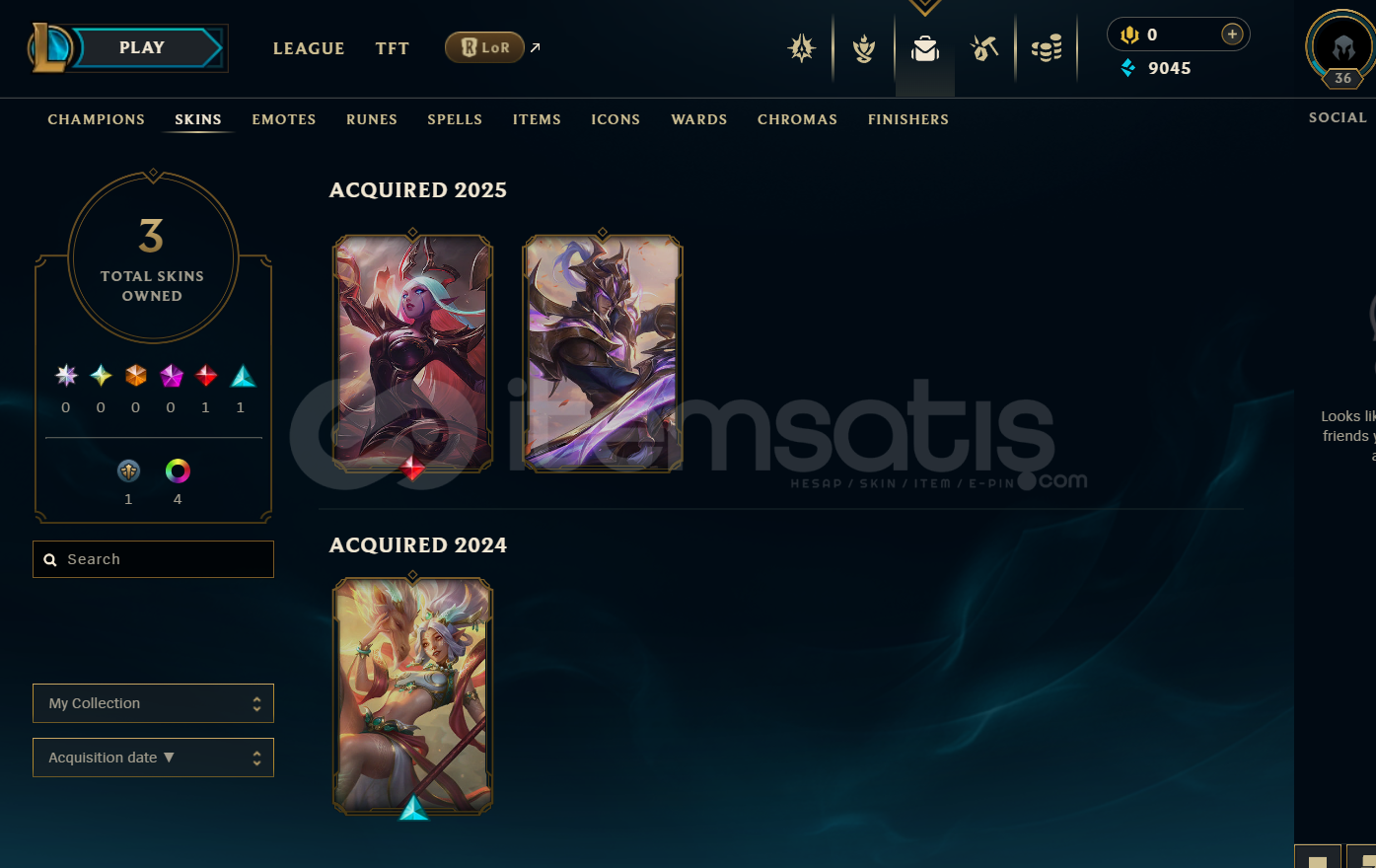 EUW Zümrüt 4 | 3 Kostüm - 22 Hero | LoL Hesap