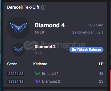 • HESAP TEKÇİFT DIAMOND 4 69 LP DİR 52 WINRATEDIR