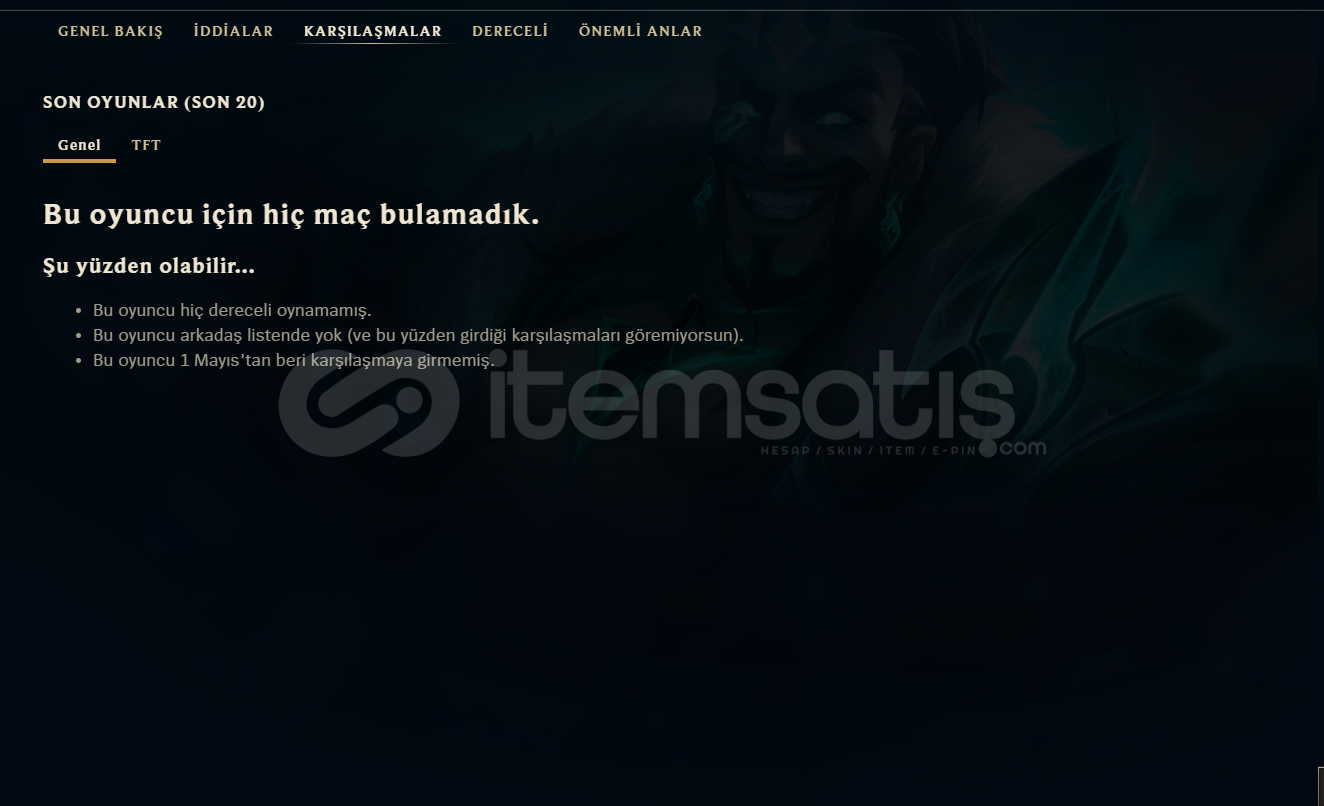 Hesap 2021 kurulum maç geçmişi olmayan eski hesaptır ban yemez . Hesap sizin mailinize kaydedilecek . Hesap 57 Level ve Unranked . Hiçbir ban yok . Bol ve kaliteli kostümler mevcut . Bol ganimet mevcut . İsim değiştirme hakkı mevcut . 7/24 sorunsuz teslimat . Alana hayırlı olsun .