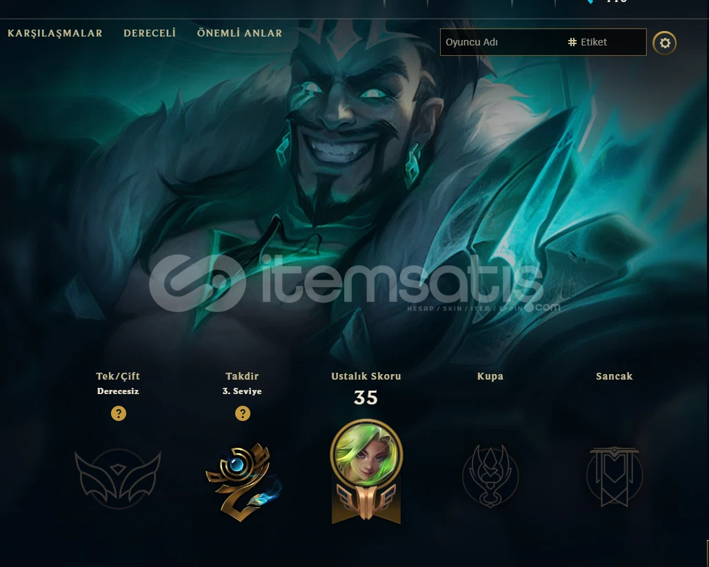 Hesap 2021 kurulum maç geçmişi olmayan eski hesaptır . Hesap sizin mailinize kaydedilecek . Hesap 57 Level ve Unranked.İlk 10 maç 6 win 4 lose
