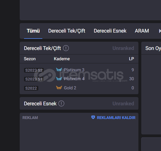 GEÇEN SEZON PLAT / DERECELİ HAZIR / 69 LEVEL