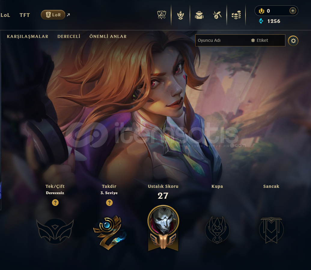 Hesap eski kurulum hesaptır ban yemez . Hesap sizin mailinize kaydedilecek . Hesap 38 Level ve Unranked . Geçen sezon Zümrüt . Dereceli hazır ve hiçbir ban yok . Kaliteli ve bol kostümler mevcut . İsim değiştirme hakkı mevcut . 7/24 sorunsuz teslimat . Alana hayırlı olsun. 19
