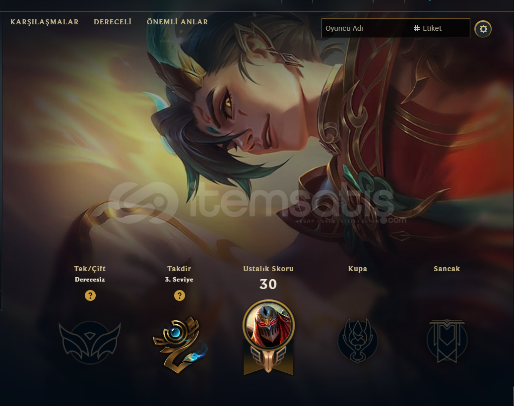 Hesap 2021 kurulum eski hesaptır ban yemez . Hesap sizin mailinize kaydedilecek . Hesap 58 Level ve Unranked . Geçen sezon Zümrüt . Dereceli hazır ve hiçbir ban yok . Kaliteli kostümler mevcut . İsim değiştirme hakkı mevcut . 7/24 sorunsuz teslimat . Alana hayırlı olsun . 23