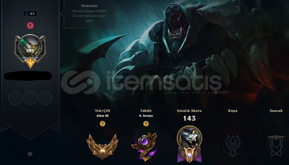GOLD 3 139 ŞAMPİYON RENGAR MAIN HESAP