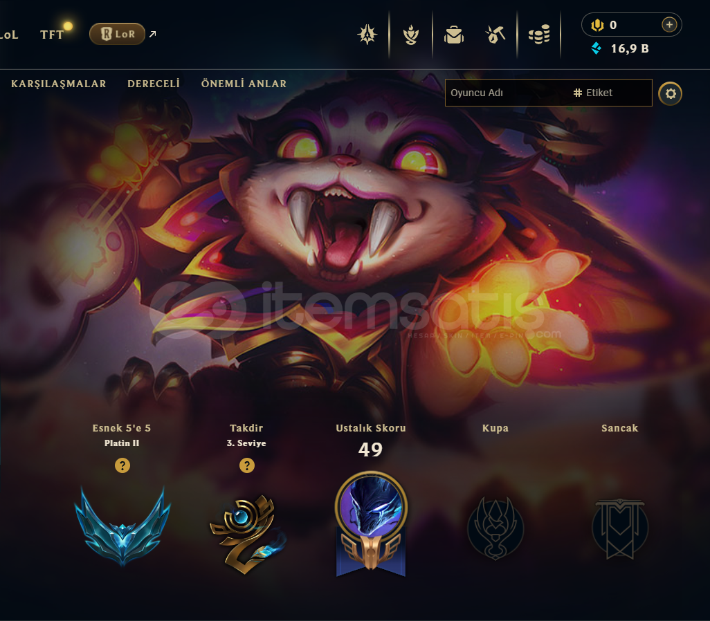 Hesap elle kasılmış eski hesaptır ban yemez . Hesap sizin mailinize kaydedilecek . Hesap 41 Level ve Gold 4 . Dereceli hazır ve hiçbir ban yok . Bol mavi öz ve bol şampiyon mevcut . İsim değiştirme hakkı mevcut . 7/24 sorunsuz teslimat . Alana hayırlı olsun . 4