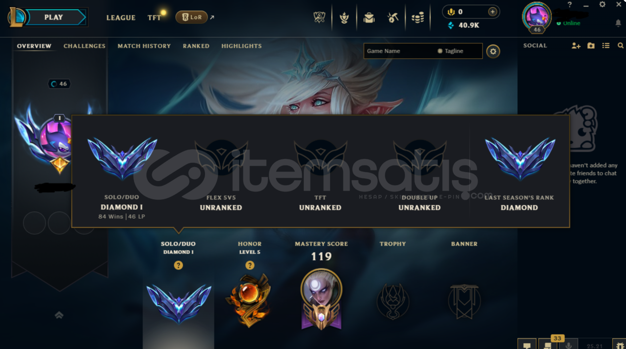 LEAGUE OF LEGENDS DIAMOND 1 46 LP HESAP
