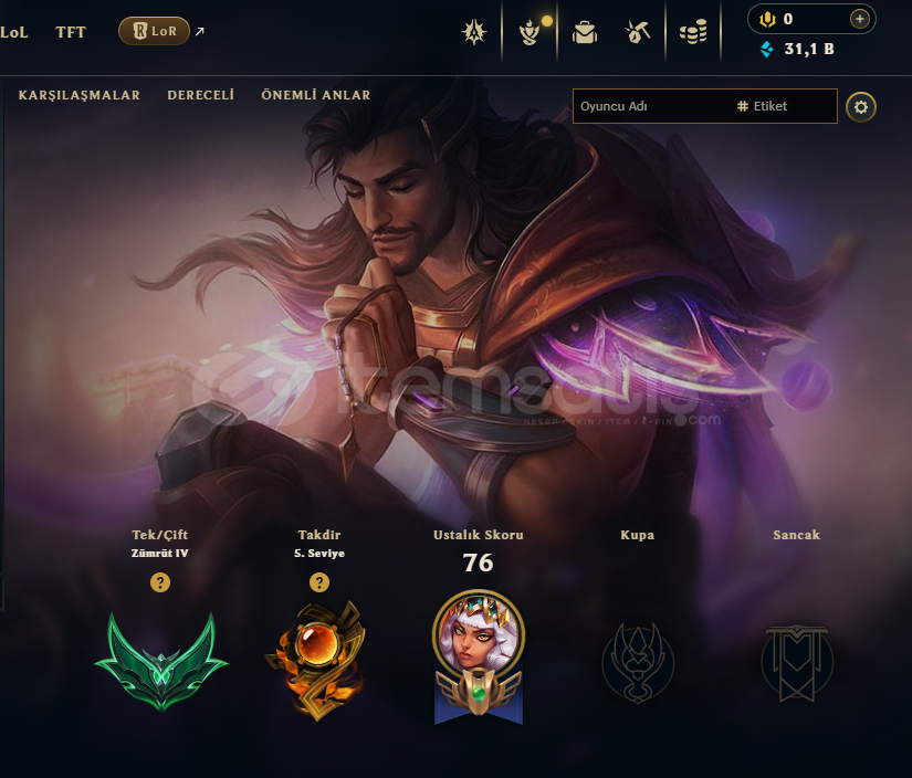 HESAP EUWEST SUNUCUSUNDA TEKÇİFT ZÜMRÜT 4 32LP DİRHESABIN %67 WINRATE I VARDIR +30 -10 LP GAINE SAHİPTİRHESABIN TAKTİR SEVİYESİ 5 DİR HERHANGİ BİR BAN CEZA VS. YOKTUR TERTEMİZ HESAPTIR.HESAPTA AZ AMA DEĞERLİ SKİNLER VARDIRHESAPTA 34K YA YAKIN MAVİ ÖZ VARDIR İSTEDİĞİNİZ HEROYU AÇABİLİRSİNİZ.HESAPTA MEVCUT 64 ŞAMPİYON VE 12 KOSTÜM VARDI...