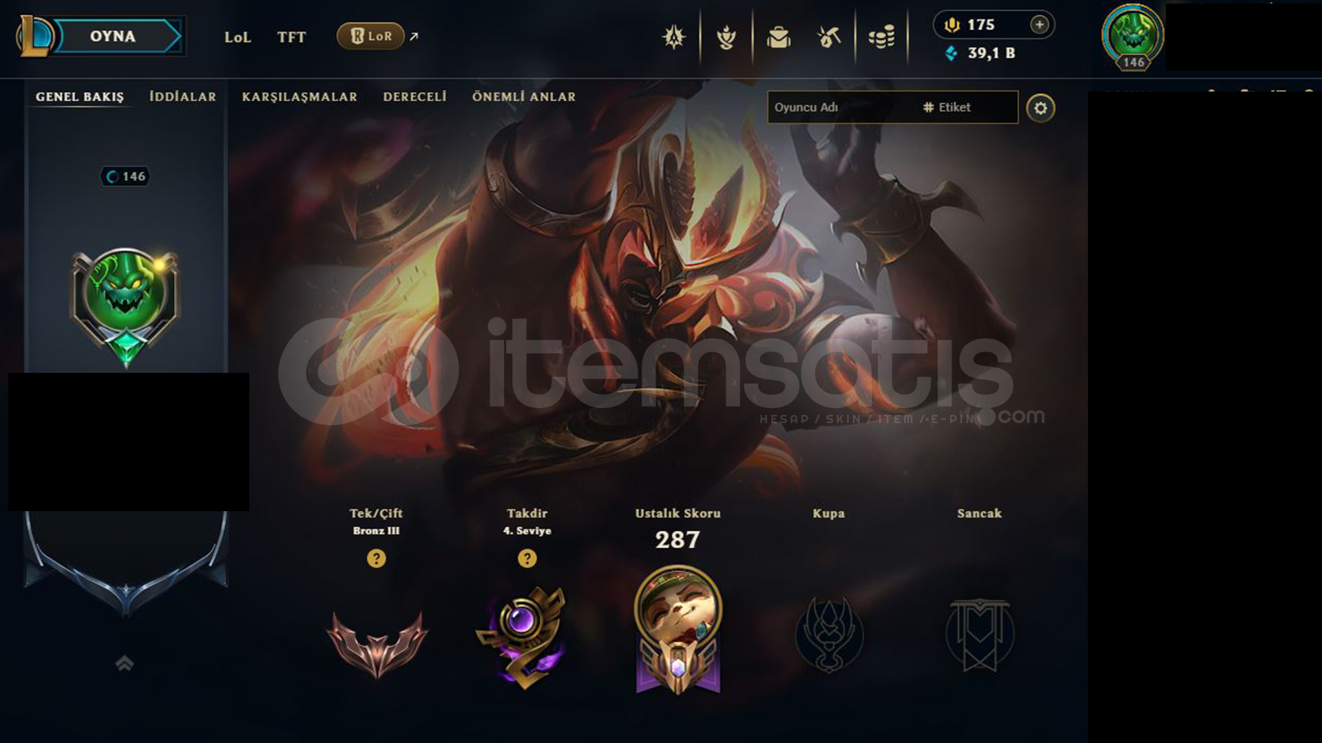 LoL EUW server emek hesap. 146 level, 40k mavi öz, elosu yok bronze şuanda. 37 kostüm: kostümler için yazın.
