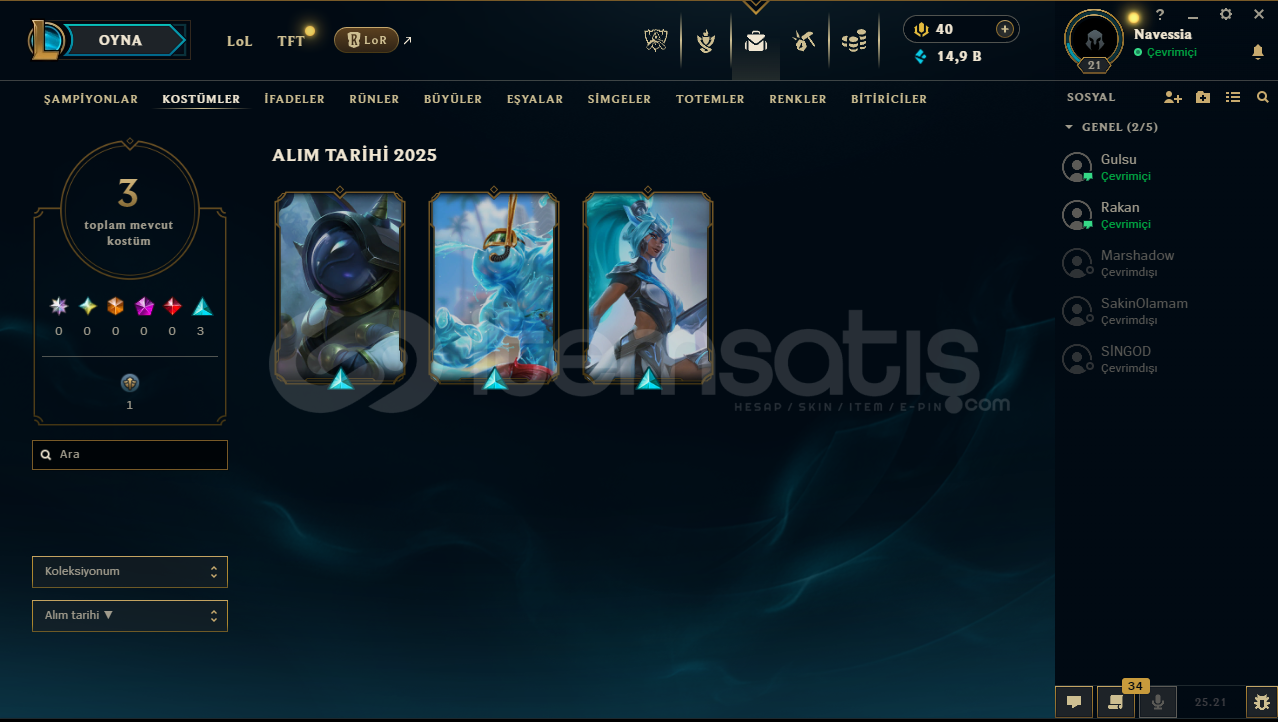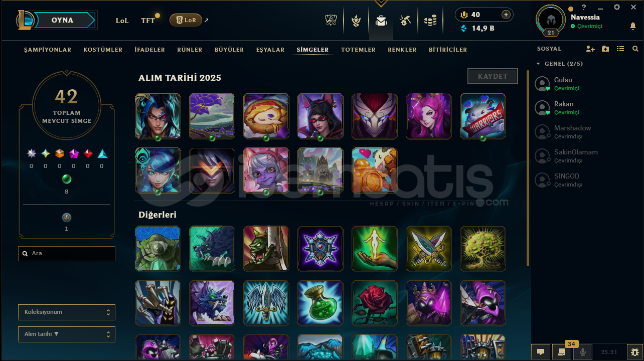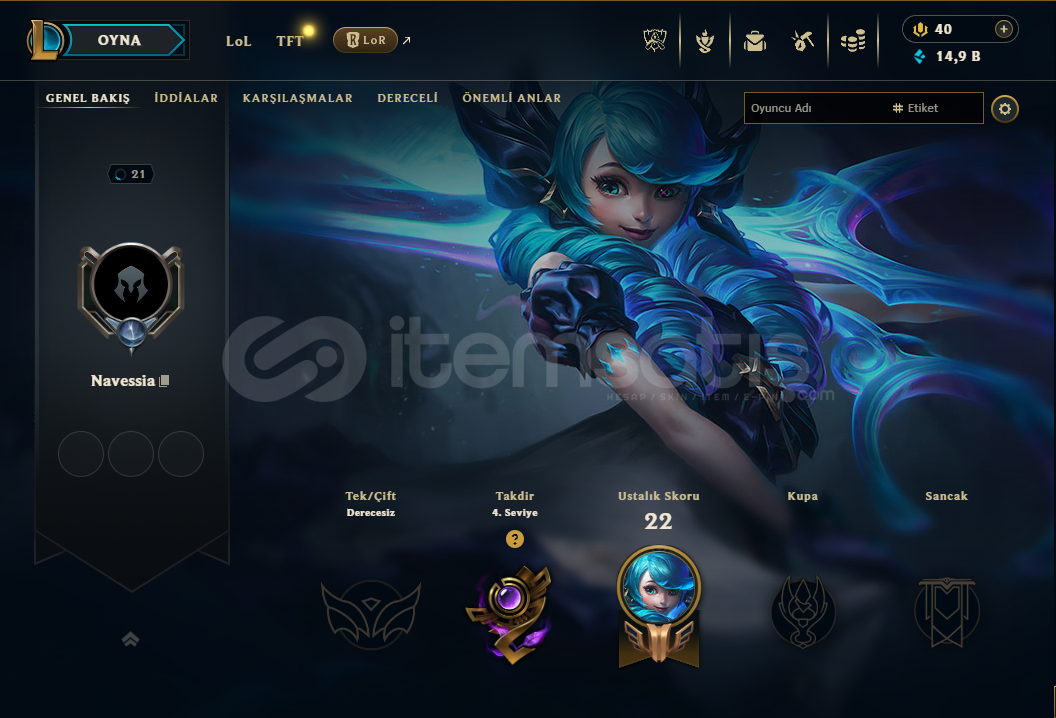 HESABI NİDALE MAİNLEMEK İÇİN AÇMIŞTIM HATTA RP YATIRIP KOSTÜMÜNÜ ALDIM AMA İŞLERİMDEN DOLAYI OYNAYAMIYORUM EUW SERVERİNDE HESAP KASMAK İSTEYENLER İÇİN İDEALDİR HESAP 21 SEVİYEDİR TAKTİR İ 4 SEVİYEDİR ALAN KİŞİ 30 YAPIP LİG KASABİLİRAYRİYETTEN WİLD RİFT HESABI DA VARDIR İÇİNDE OYNUYOR İSENİZ ...