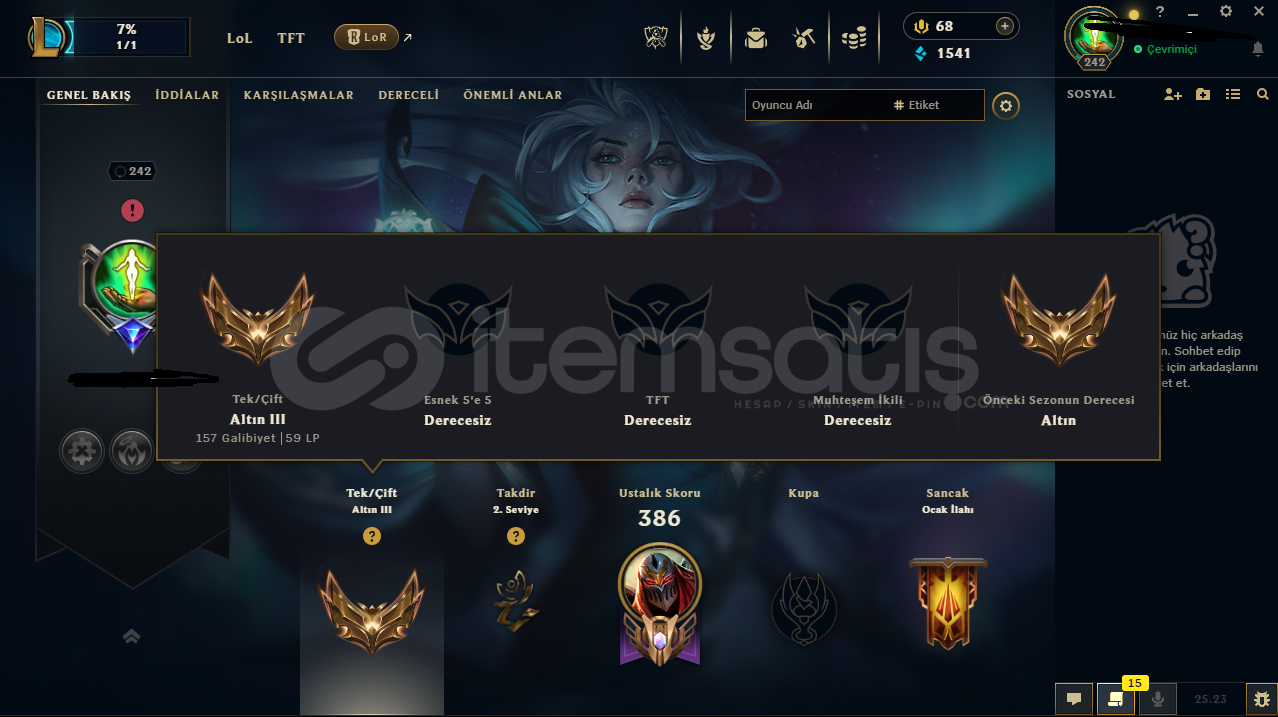 LOL WEST 241 LVL AKTİF GOLD 3 PAZARLIK YAPILIR
