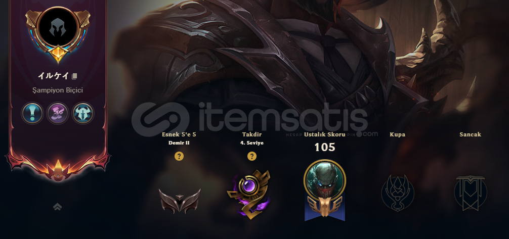HESAP ÖZELLİKLERİ-Hesap hem esnek hemde derecelide DEMİR rankındadır-Geri çekme olmaz-Hesapta skin vardır-Hesaptaki taktir seviyesi 4 tür-Hesapta 1 maç dereceli banı vardır-Satın almadan önce stok kontrolü yapınız-Aklınıza takılan soruları sorabilirsiniz
