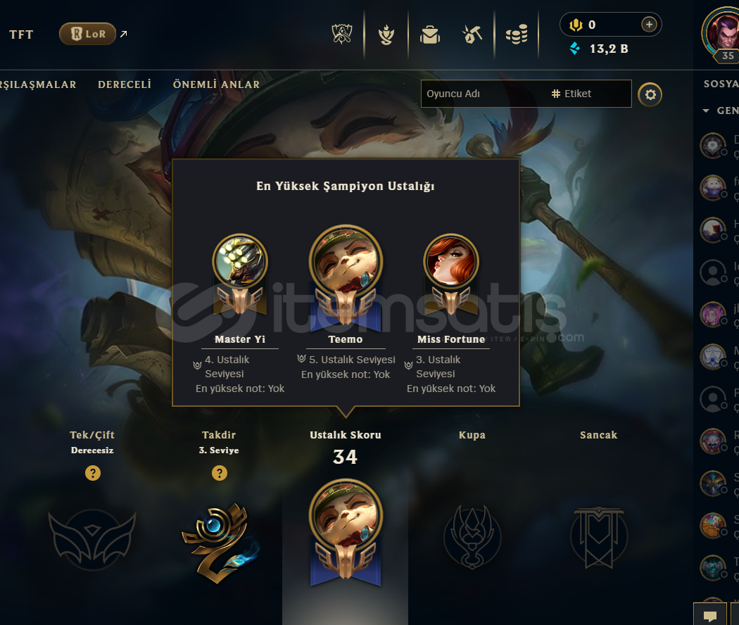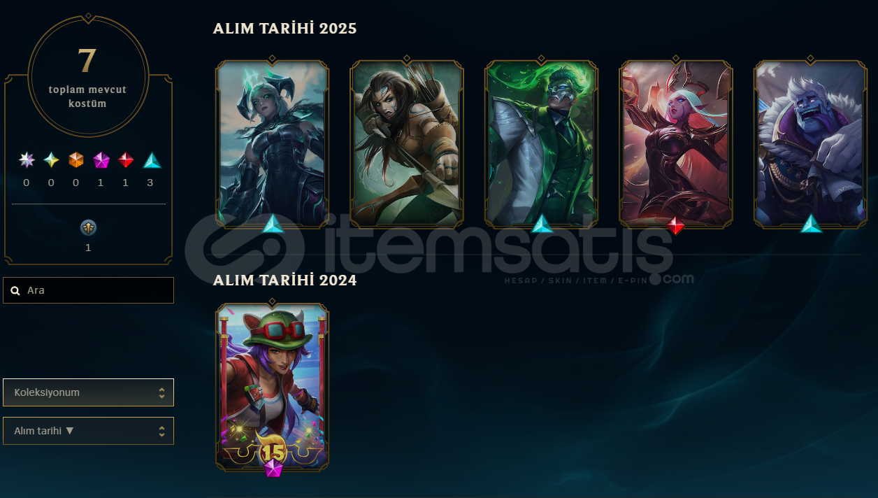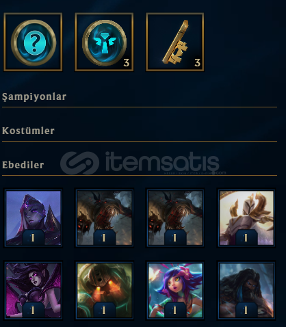 7 Kostümlü 35 Level EUW Hesap Hesabın derecelisi açıktır dereceli girebilirsiniz Hesabın maili onaysızdır girip kendiniz değiştirebilirsiniz Hesabın op.gg linki: https://op.gg/lol/summoners/EUW/SuperZeihaJiNN93-EUW