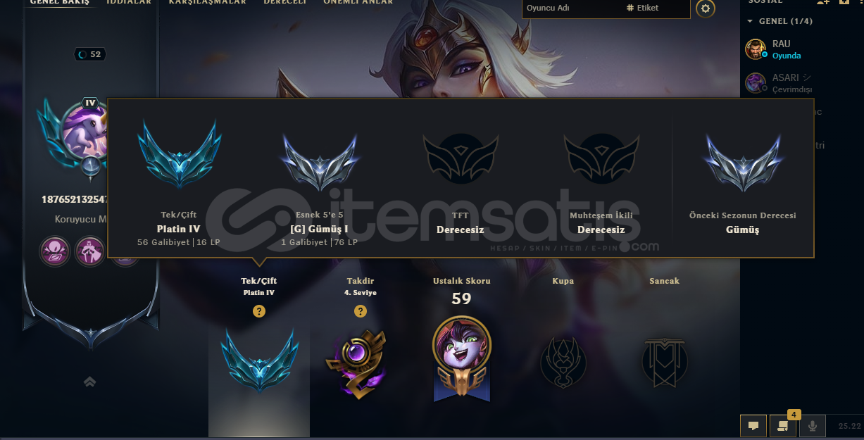 EUWPLAT 4 16LPESNEK GÜMÜŞ 1 76LP / GEÇİCİ LİGİNDE HIZLI LİG ATLARGEÇEN SEZON GÜMÜŞ BİTİRDİ52 seviye2024 KURULUM5 KOSTÜM