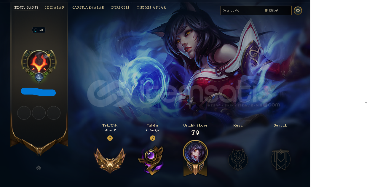 PLAT ELO 4.SEVİYE TAKDİRLİ WEST HESAP