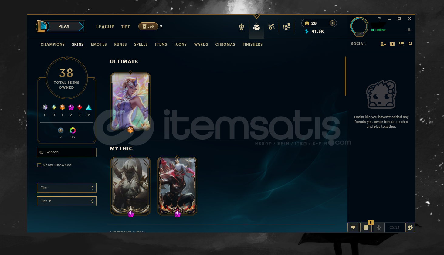 Prestij Aatrox, Faker Vayne skinleri vardır. Kendim para yatırıp aldığım skinlerdir.
