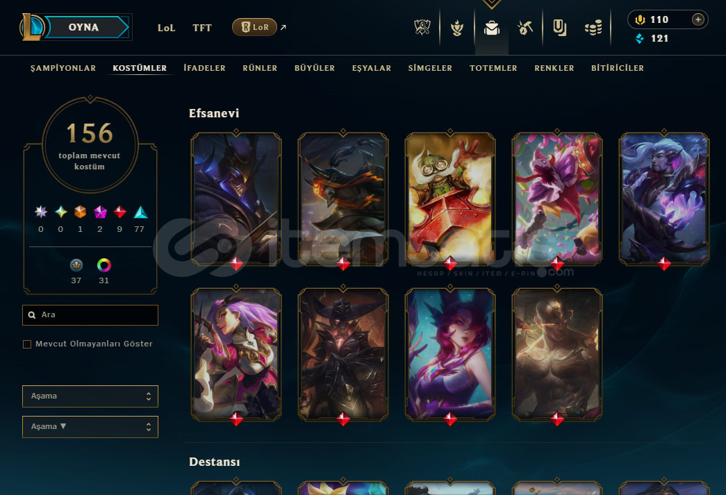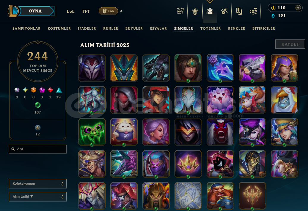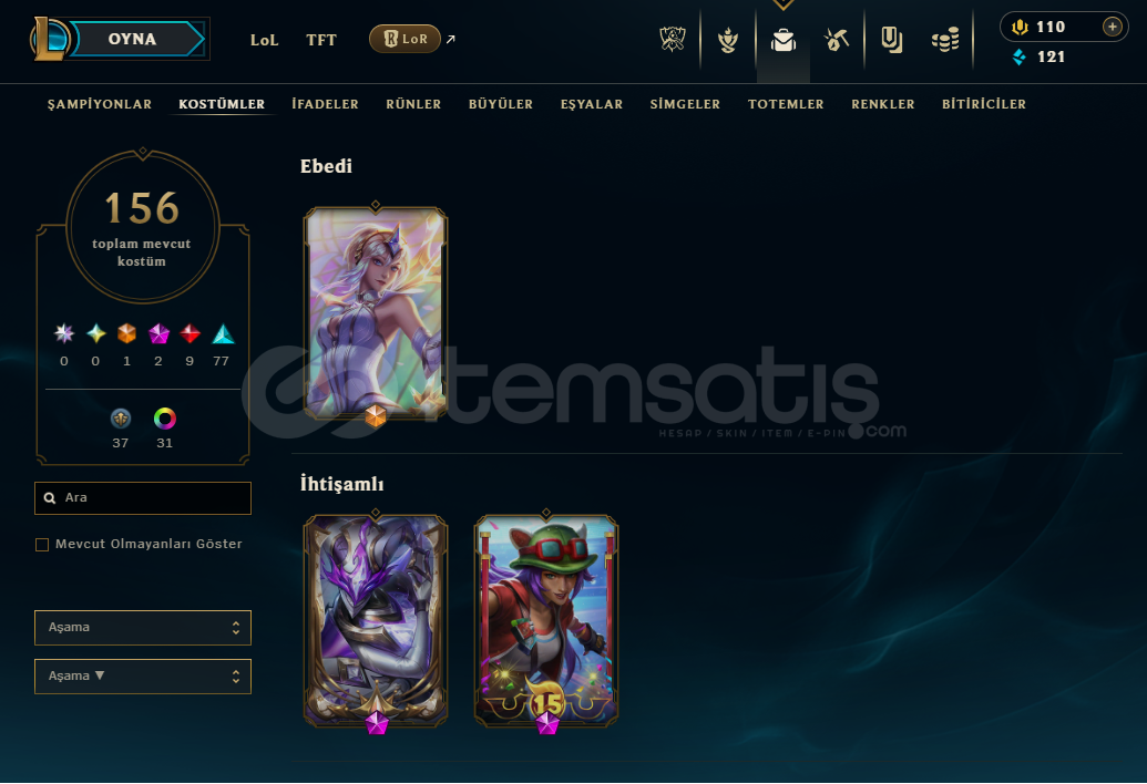 🔥 League of Legends BilgileriElo: GümüşToplam Kostüm: 156Simge: 244Totem: 51Renk (Chroma): 31Ana hesap, ceza yok, mail değişime uygun.💥 Valorant EnvanteriBıçaklar:🗡️ Asil Karambit🗡️ Uzay Avcısı Bıçak🗡️ Semavi Yelpaze🗡️ + Birçok ek bıçak kostümüVandal Skinleri:🎯 Gaia Vandal🎯 Asil Vandal🎯 Arcane Vandalӿ...