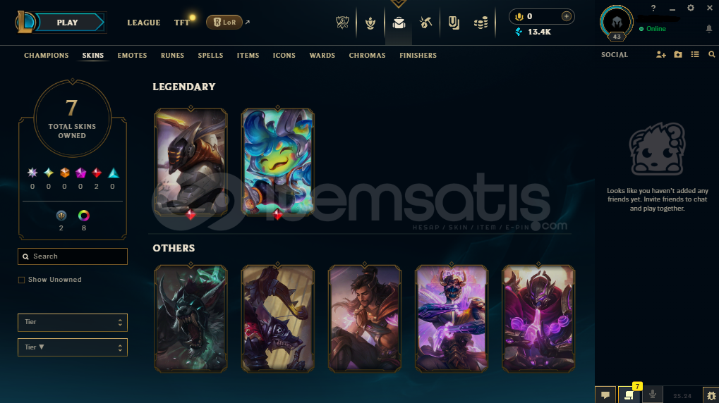 Diamond 4 Hesap !7 Kostümü var !13 K Mavi Öz var !55 Şampiyon açık !Herhangi bir ban vs yok !Merak ettiğiniz bir şey olursa sorabilirsiniz.