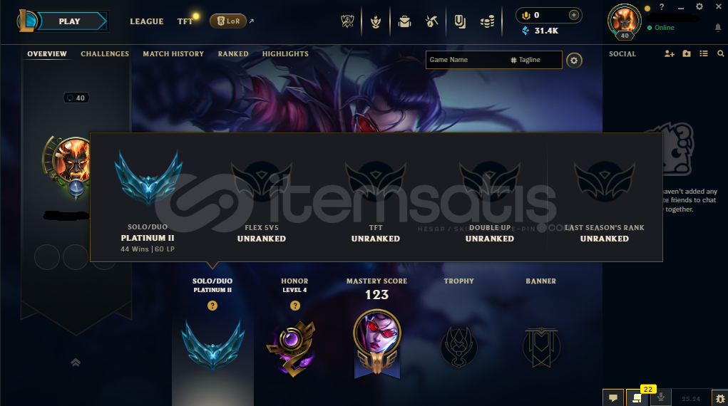 Plat 2 60 LP , 55 WR Hesap !31 K Mavi Öz Var !2 Hex sandık var !3 Güzel Kostümü var !Ban vs yok !Merak ettiğiniz bir şey olursa sorabilirsiniz.