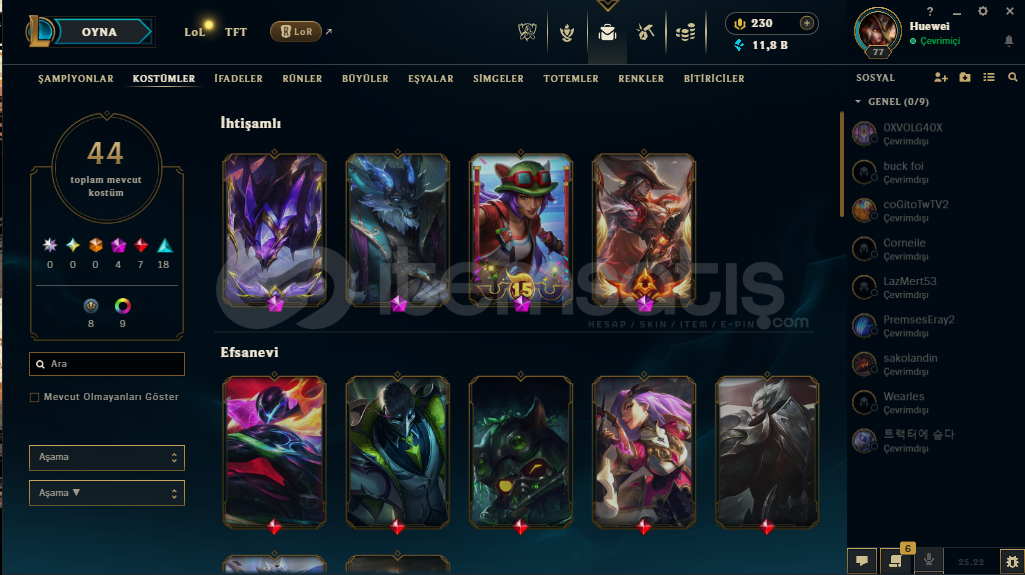 Ve daha bir çok değerli skin bütün skinler değerlidir değersiz skin yoktur ayriyetten skin dönüştürme yerinde 50 tane skin vardır hepsi değerlidir fotoğraflarda görebilirsiniz