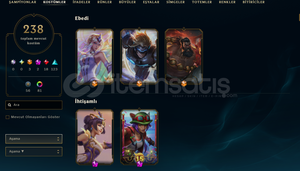 238 KOSTÜM451 SEVİYE 2ŞAMPİYON EKSİK223 İFADE VE 84 KOSTÜM RENK MEVCUTTURTEL BAĞLANTISI VARDIR MAİL DEĞİŞİR