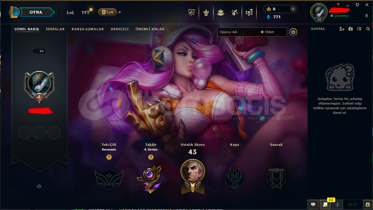 30 LEVEL EU WEST SUNUCUSU LOL HESABIM SATILIKTIR.TAKDİR 4 SEVİYEDİR. HERHANGİ BİR CEZASI BULUNMAMAKTADIR.79 KARAKTER AÇIKTIR.2 KOSTÜM MEVCUTTUR. 1 DESTANSI2 TOTEM MEVCUTTUR.GÜVENLİK AÇISINDAN İSMİNİ KARALADIM.ALICISINA HAYIRLI OLSUN.