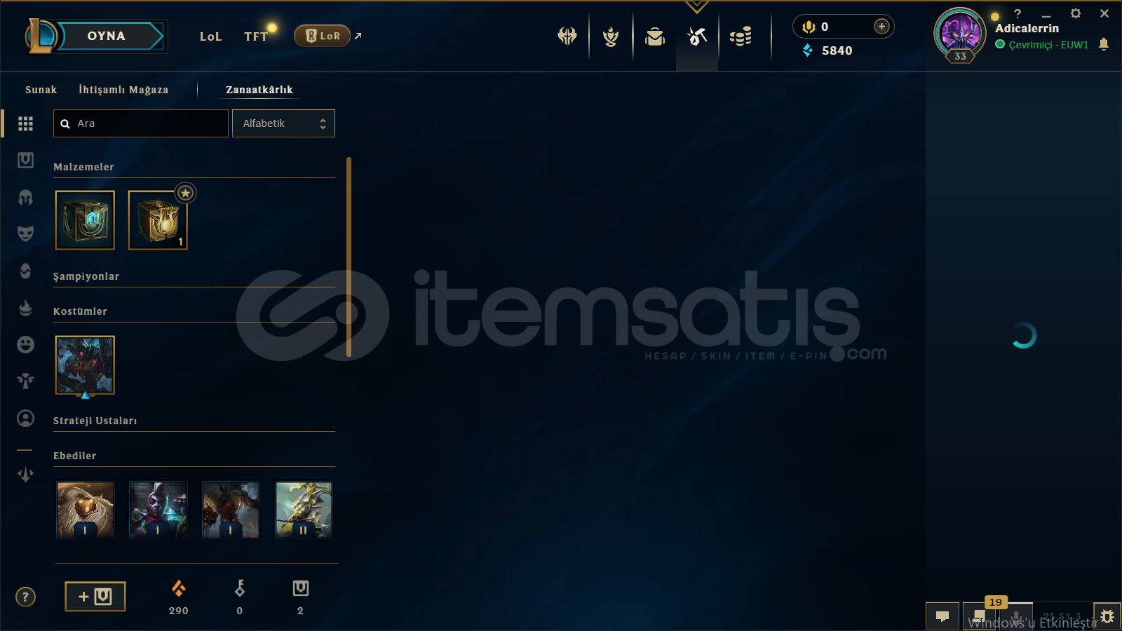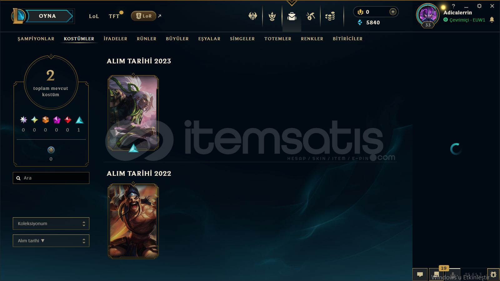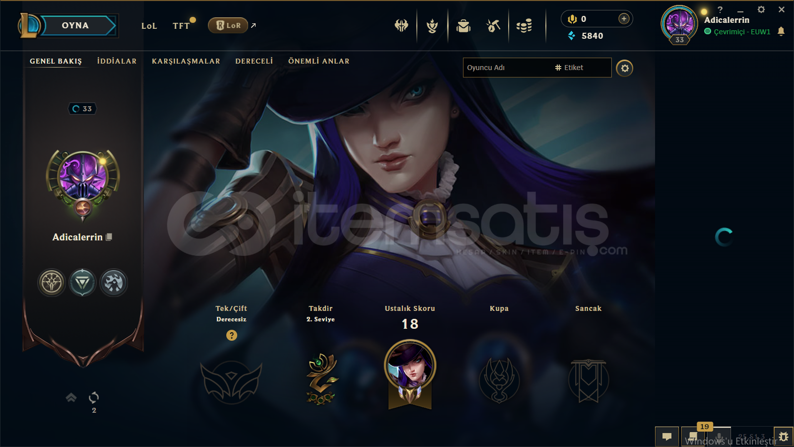hesap 2 sezon dinlenmiş olup hiç maç atılmamıştırunranked olup içinde gölgedövmeli yasuo kostümü vardırotp hesap yapılmaya uygundurmail değişimi yapılacaktır dilediğniz şekilde kullanabilirsiniz