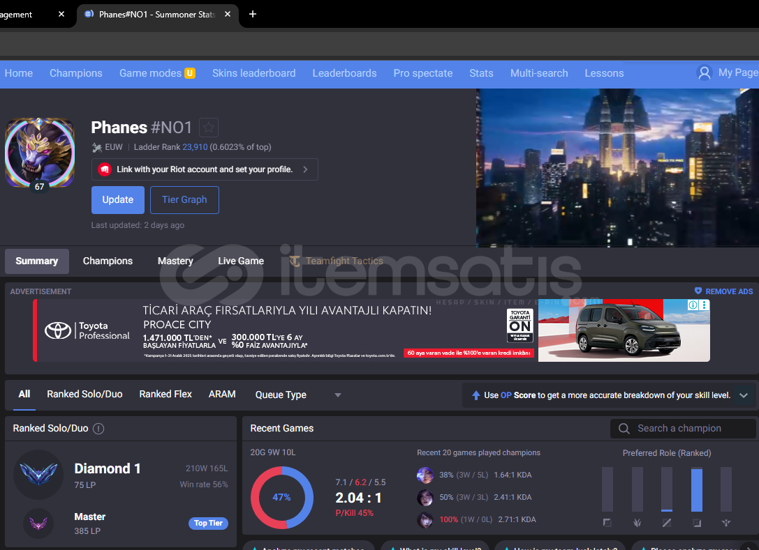 1 aylık rank kastığım bir hesap 385 lp master peak / 59 şampiyon / 13 kostüm / 1520 rp / 11k mavi öz