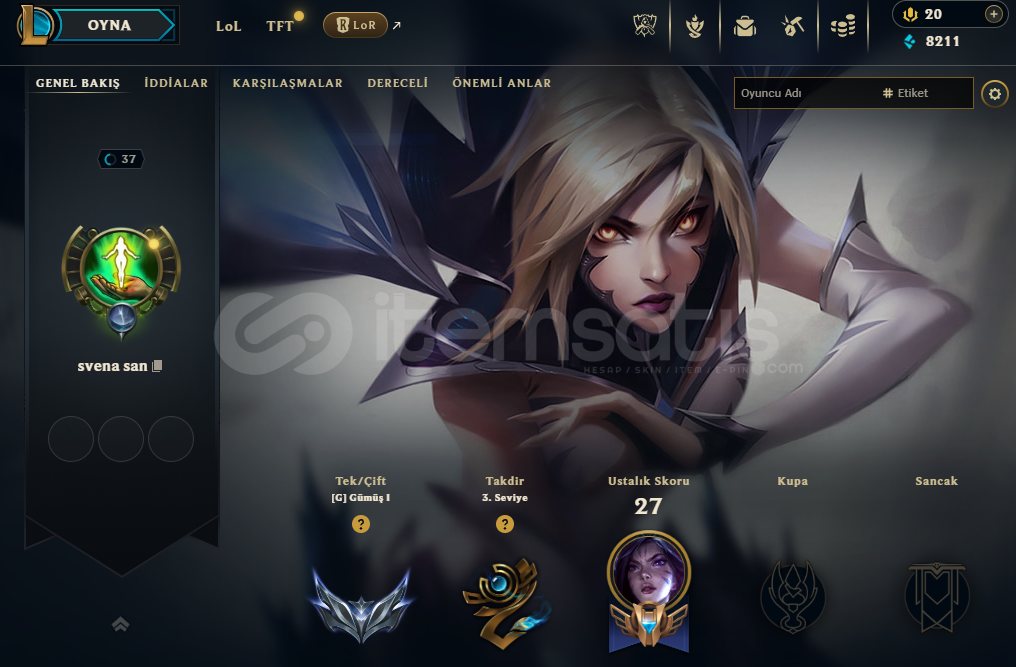 Sunucusu west.geçen sezonu plat bitirdi şuanda yerleştirme 2 maç silver 1.Otomatik teslimat ilanı satın aldığınızda kullanıcı adı ve şifre size otomatik olarak iletilecektir.