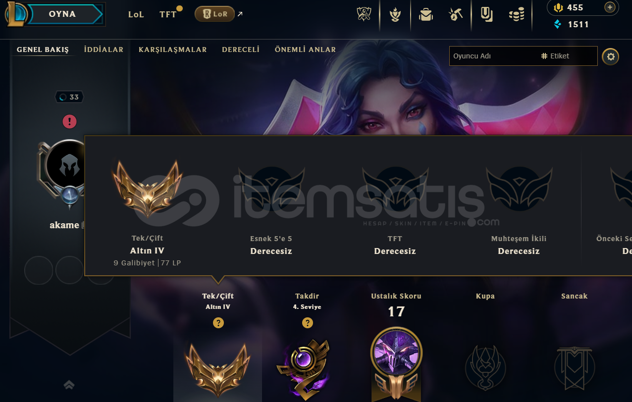 Mail onayı yapılmamıstır yüksek lp vermektedir elo plat gold civari.
