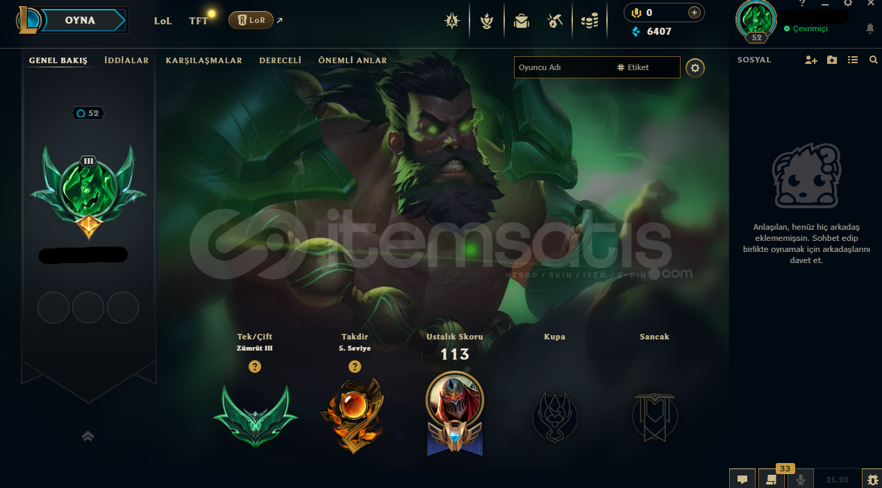Hesabımız Zümrüt 3 67 LP'dir Soloq'da.5.Takdir seviyesi.1708 turuncu özü vardırGanimet kısmı resimlerde yok çünkü ganimet boş.12 Skini bulunmaktadırTelefon onaylı hesap değildir.64 şampiyon vardır.02.11.2025 tarihinde isim değişikliği hakkı gelecektir.