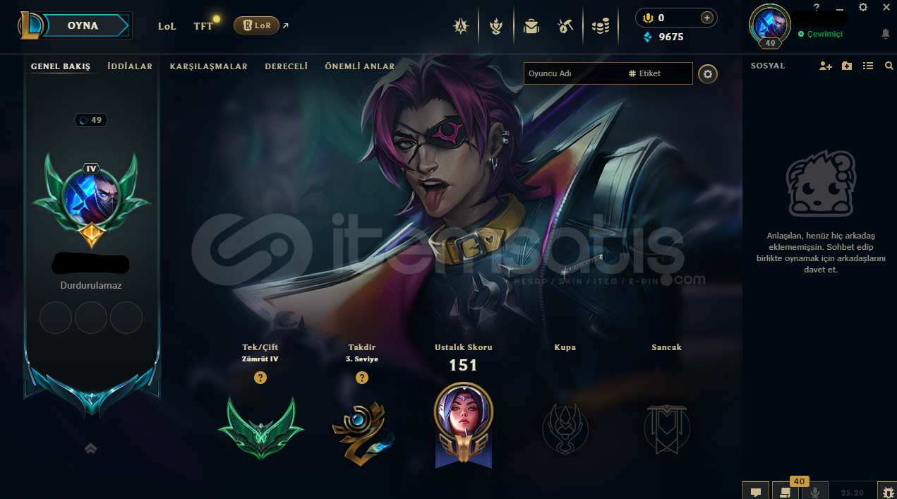 Zümrüt 4 27 LP 81.8 Winrate18 Win 4 Lose42 şampiyon9 Adet KostümOyundaki isminizi 24.11.2025 tarihinde değiştirebilirsiniz.İsmi en son ben koydum ismi kötü değil merak etmeyin.Resimlerde hesap hakkında çoğu şeye ulaşabilirsiniz onun haricinde merak ettiğiniz başka bir şey olursa bana yazabilirsiniz.