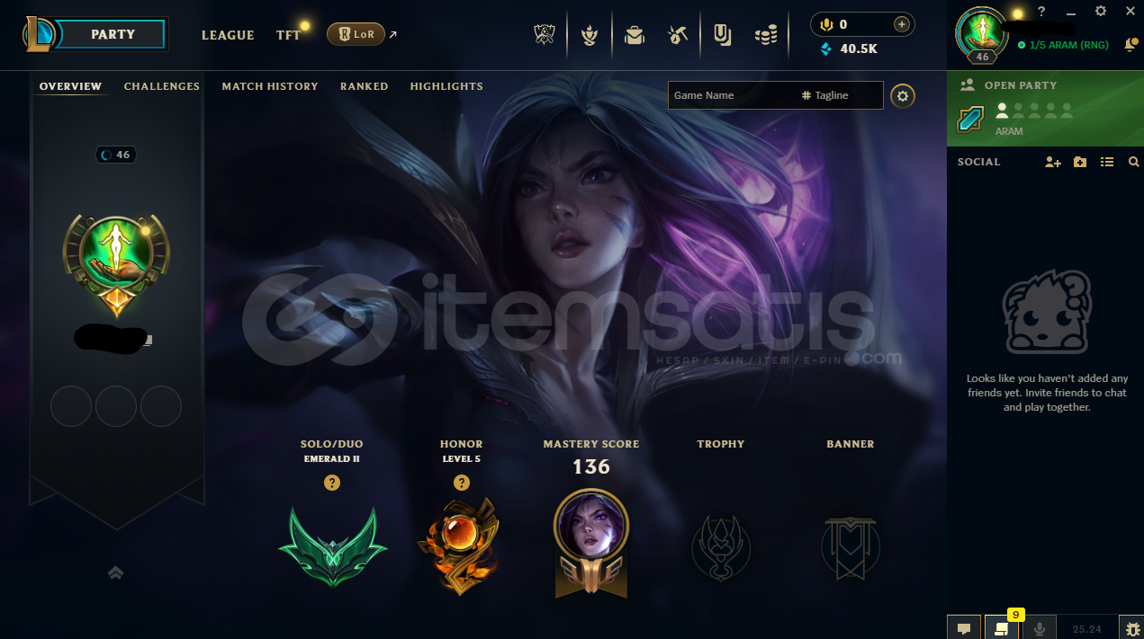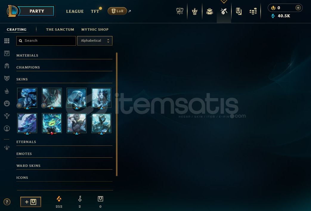 Bölge EUWEpostası ve şifresi değişiyor telefon bağı yokturHızlı teslimatSeviye: 46Mavi öz: 40526Takdir seviyesi : 5Solo rütbe: zümrüt 2 80w 69l 54% wrHerhangi bir sıra veya ban cezası yoktur===================== LoL Envanteri =====================Şampiyonlar 52Kostümler 7Simgeler 10İfadeler 10Totemler 3Ganimette 8 kostüm kristali vardırHesap garantilidir herhangi bir sıkıntıda de...
