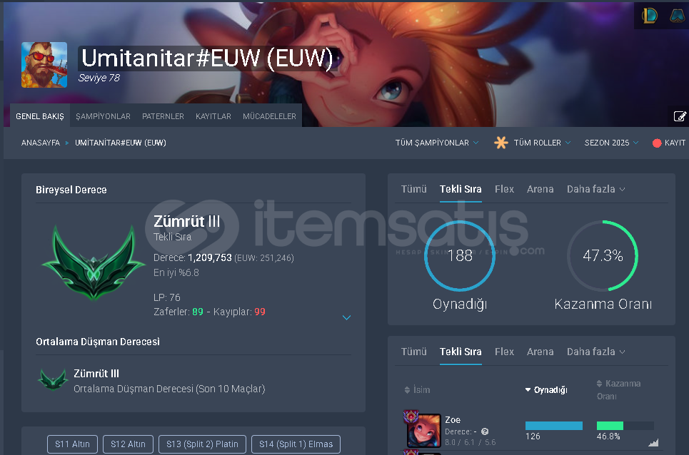 ZÜMRÜT 4 EUW HESAP - geçen sezon elmas