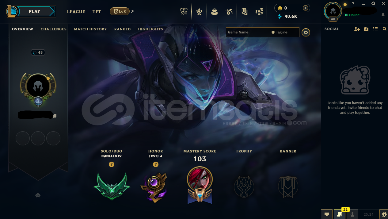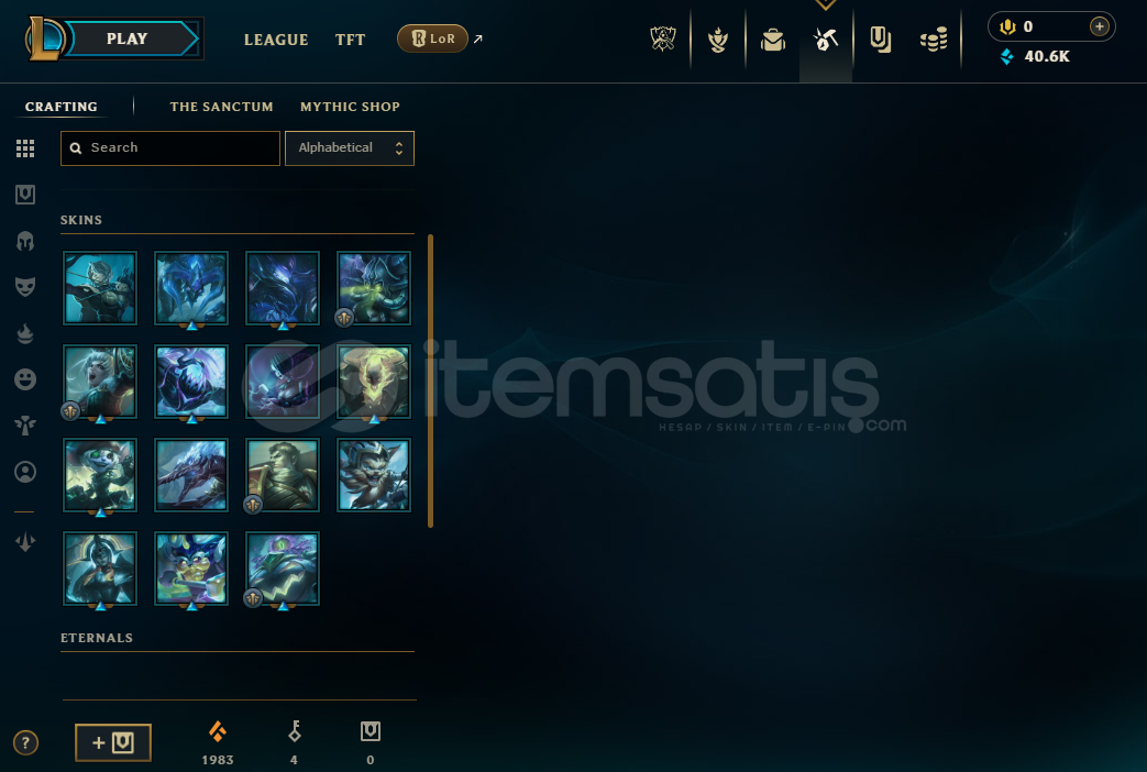 Bölge EUWEpostası ve şifresi değişiyor telefon bağı yokturHızlı teslimatSeviye: 48Mavi öz: 40665Takdir seviyesi : 4Solo rütbe: zümrüt 4 49w 30l 62%wrHerhangi bir sıra veya ban cezası yoktur===================== LoL Envanteri =====================Şampiyonlar 53Kostümler 7Simgeler 69İfadeler 21Totemler 6Ganimette 15 kostüm kristali+1982 turuncu öz ve 4 anahtar bulunmaktadır.Hesap garantilidir h...