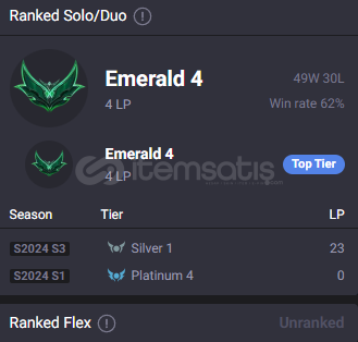 Solo rütbe: zümrüt 4 49w 30l 62%wr